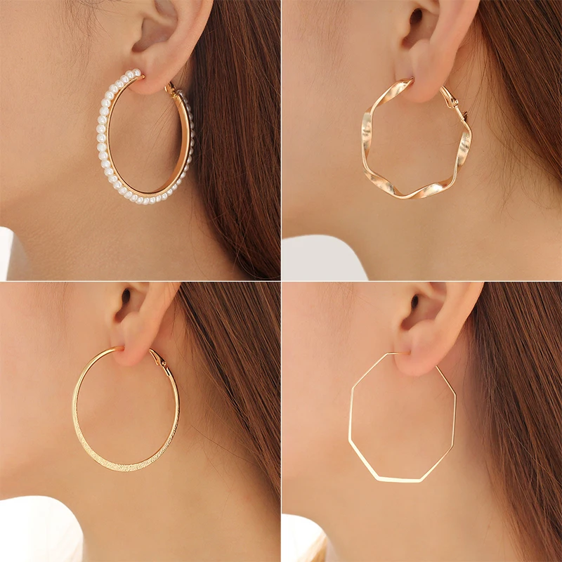 Новые жемчужные серьги-кольца для женщин преувеличены негабаритный жемчуг, Круглый ухо свободные Модные Серьги Европа Ювелирное Украшение...