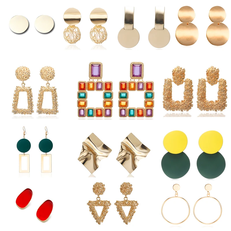 2019, Винтажные серьги, большие для женщин, массивные серьги, геометрические, золотой цвет, металлическая подвеска, серьги, трендовые, модные ю...