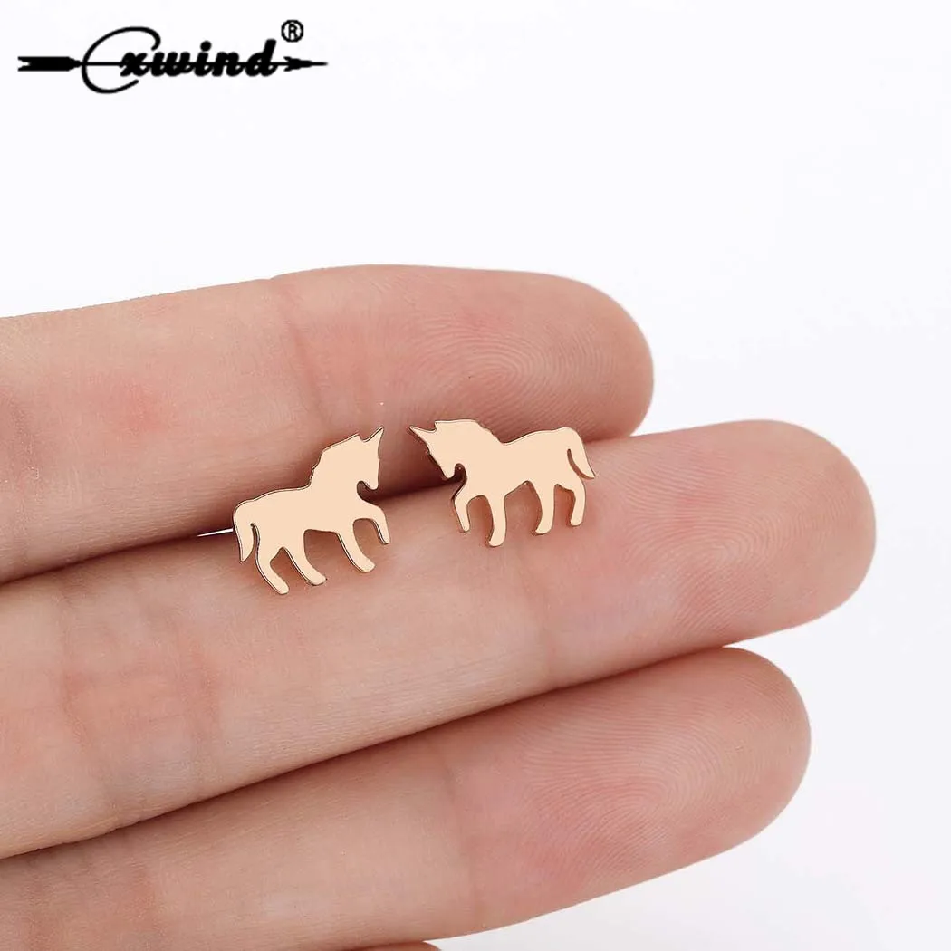 Cxwind, модные серьги-гвоздики с изображением единорога, золотые, серебряные серьги с мультяшными животными для женщин и девочек, детские серьги