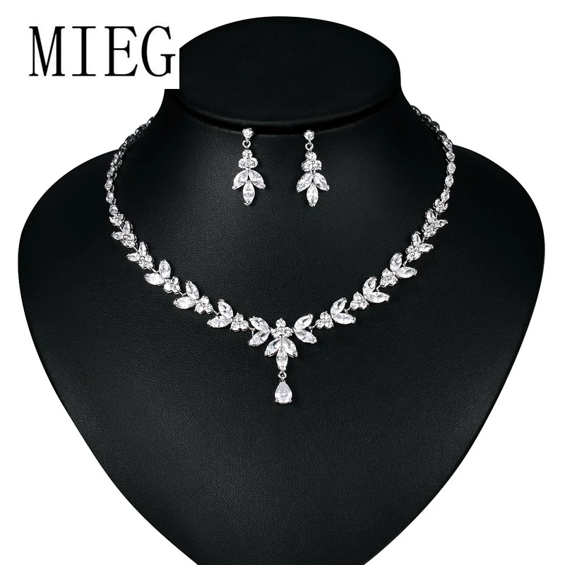 Кубический Цирконий Кристалл CZ свадебное ожерелье и серьги Свадебные украшения набор из белого золота цвет или желтого золота цвет покрыти...