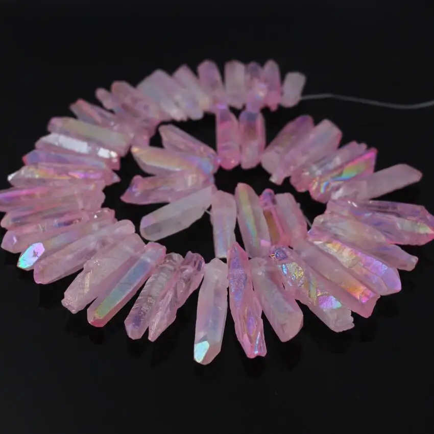 15.5 "Strand большой розовый AB Титан кварцевый кристалл верхней пробурено Точка Подвеска Бусины, необработанный Кристалл Туск окончил Цепочки и ...