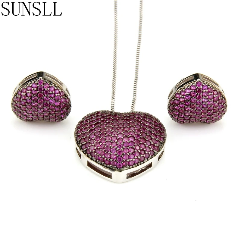 SUNSLL два Цвет Медь сердце любовь разноцветный Кубический Цирконий серьги стержня и женское колье-подвеска ювелирные изделия комплекты