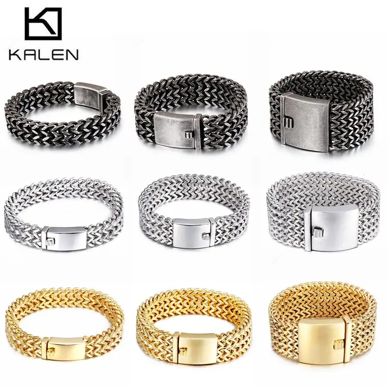 Kalen новые браслеты из нержавеющей стали с цепочкой из полированной Дубаи золотые сетчатые браслеты для мужчин крутые ювелирные аксессуары ...