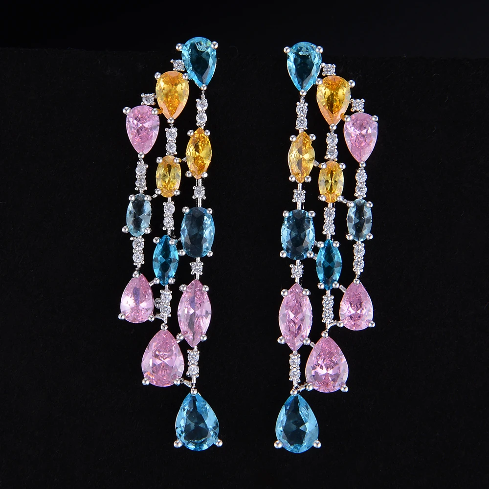 PATAYA 17 Цвета 585 розовое золото для женщин Винтаж ювелирные украшения многоцветный искусственный кубический циркон большие длинные серьги ко...