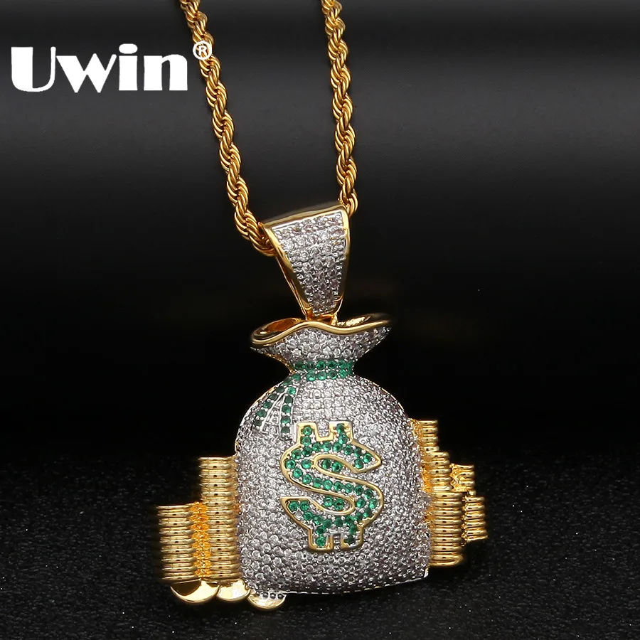 Uwin Роскошные ювелирные изделия богатые США мешок денег монета стек цепочки и ожерелья цепи Золото Цвет Bling Iced Out CZ кубический циркония