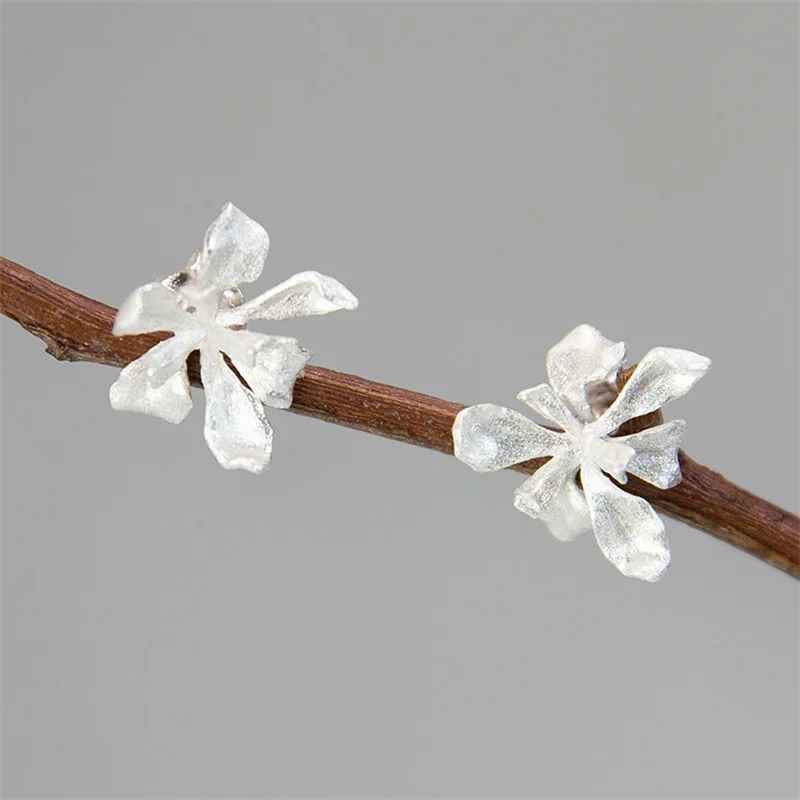 INATURE винтажные 925 пробы серебряные серьги-гвоздики с цветком ириса для женщин Свадебные ювелирные изделия