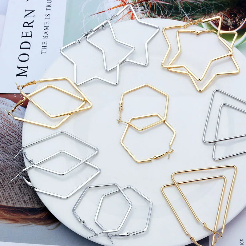 ES356 геометрический полый пятиконечная звезда яркие женские сережки личность простые серьги-кольца для женщин украшение-гвоздик ухо