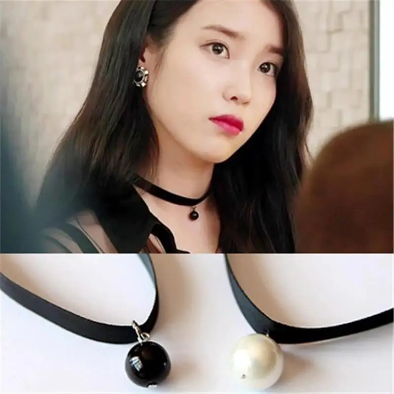 Вырез горловины Цепочки и ожерелья 2017 женщин Boho черный, белый цвет бархат имитация жемчуг Шарм Подвеска Колье Цепочки и ожерелья Готический...