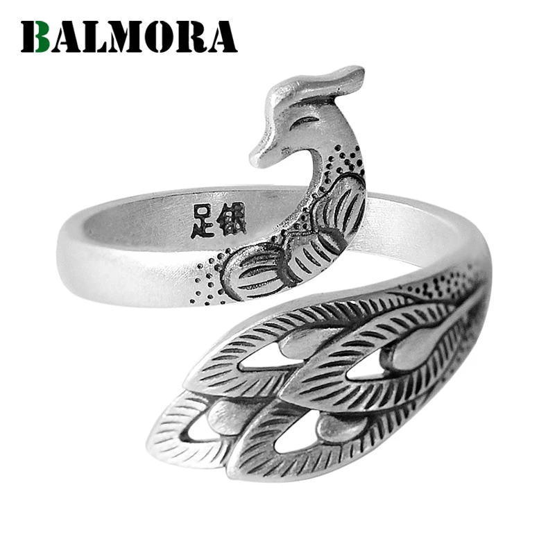 Балмора 100% реальные 990 чистого серебра Феникс Открытые Кольца для Для женщин вечерние подарки Винтаж тайский серебряное кольцо животных ...