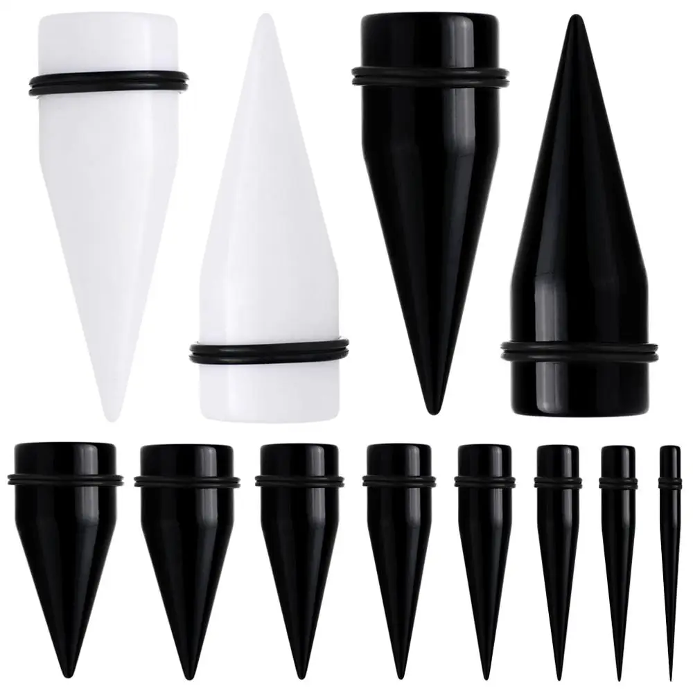 2 шт./партия, акриловые серьги и тоннели, конус для ушей, черные и белые Плаги для ушей, серьги-гвоздики, пирсинга хрящей ювелирные изделия для...