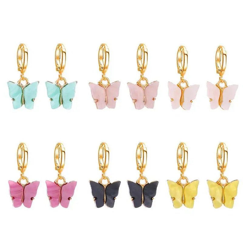 Новые серьги, модные цветные акриловые серьги-бабочки, маленькие свежие милые цветные серьги для женщин, висячие серьги, ювелирное изделие, ...