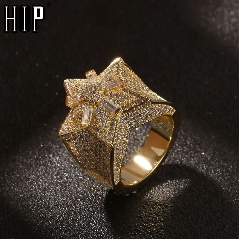 Хип-хоп микро-кристалл массивное квадратное мужское кольцо Iced Out Bling IP Позолоченные толстые титановые кольца для мужчин ювелирные изделия
