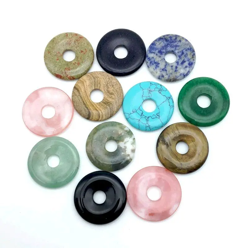 Смешанный камень пончик Серьги Подвески 18 мм круглая подвеска-пончик DIY Ожерелье Ювелирные Изделия Оникс кристалл тигровый глаз сердолик и т. Д.