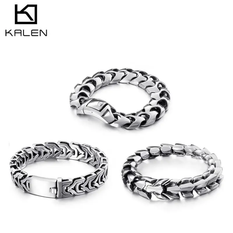 KALEN Высокая полированная стрелка в форме браслета мужские 22 см из нержавеющей стали связывающие браслеты в виде велосипедной цепи модные му...