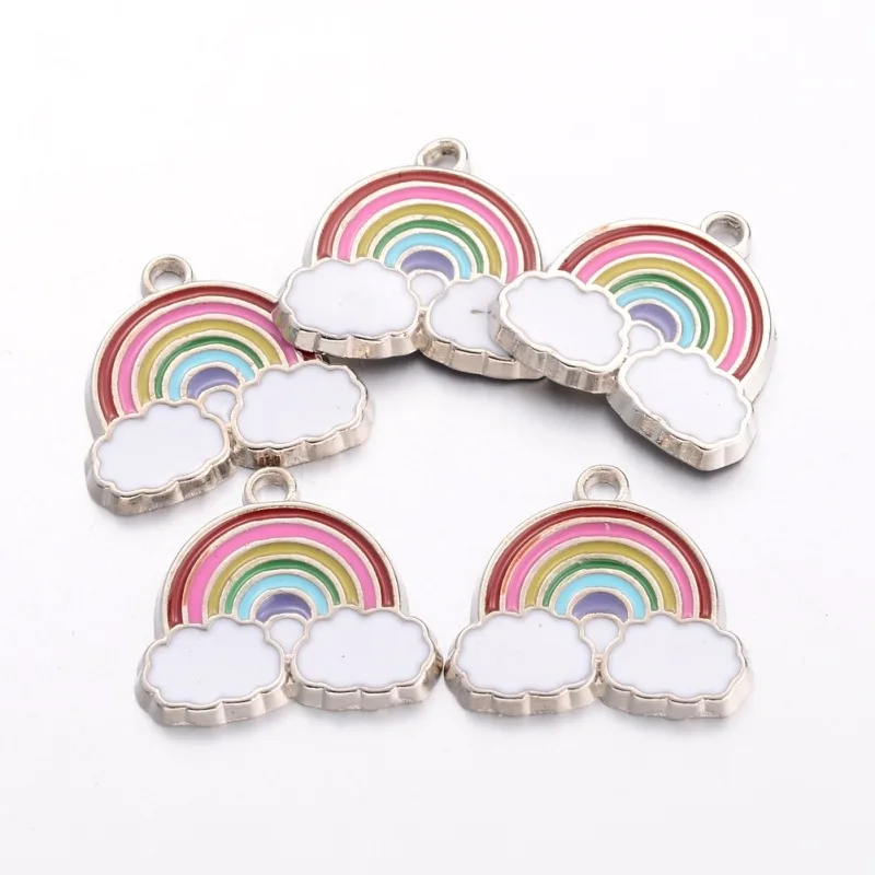 100pcs Rainbow Cloud Shape Alloy Enamel Pendants Charms for Jewelry Making DIY Bracelet Necklace 17.5x19x1.6mm Hole: 2mm
