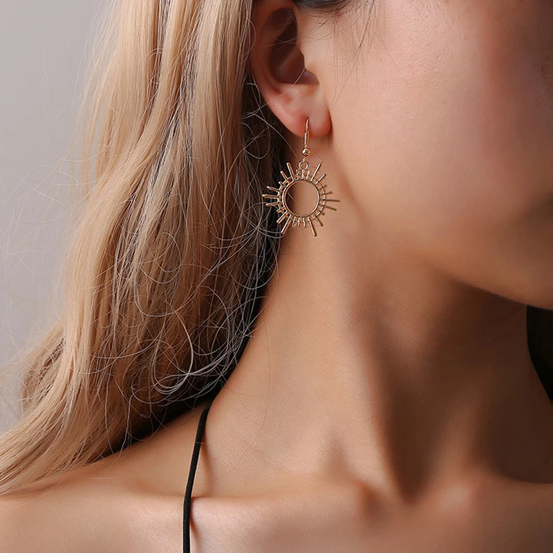Новый Дизайн Золото Цвет Личность длинные висячие серьги для женщин полые Защита от солнца Moon ассиметричные Серьги Boho индийские ювелирные
