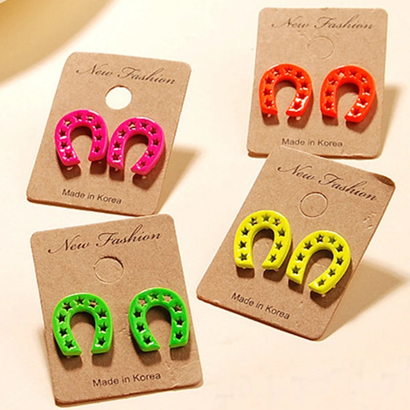2019 г. хит продаж, бесплатная доставка, оптовая продажа, флуоресцентные серьги ярких цветов в виде маленькой звезды с u-образным принтом копыт...