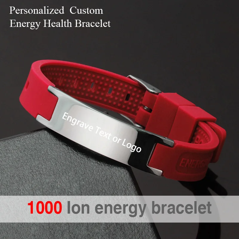 Персональный магнитный браслет из нержавеющей стали, мужские энергетические ювелирные изделия, ювелирные изделия на заказ, выгравированные имя, силиконовые браслеты, браслет