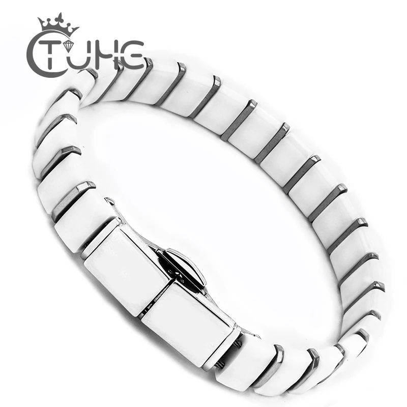 Горячая Черный Белый керамический браслет для мужчин женщина 316L нержавеющая сталь со стразами золотой браслет цепочное украшение для руки ...