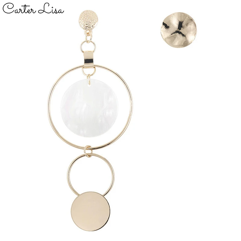 CARTER LISA, корейский стиль, асимметричный золотой цвет, большие полые круглые длинные висячие серьги для женщин, модный подарочный набор украшений для ушей