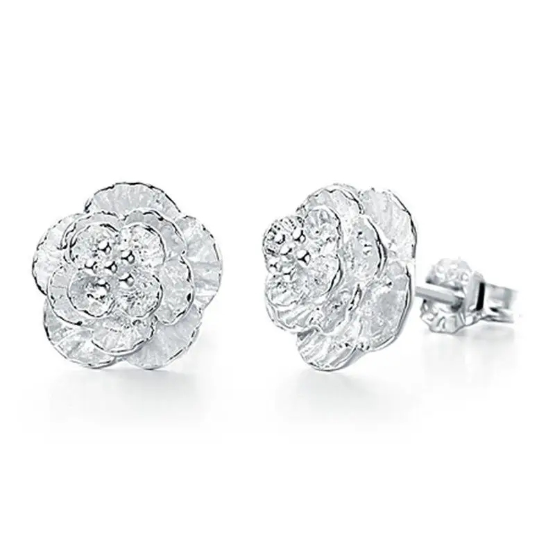 Серебряные серьги простые и элегантные многослойные листья лотоса розы серьги женские серьги для женщин букле D'oreille серьги-гвоздики