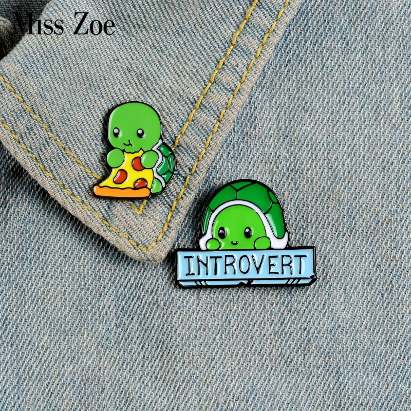 Черепаха Эмаль булавки на заказ Интроверт броши-Значки для лацкана рубашка сумка пицца значки с животными ювелирное изделие в форме черепа...