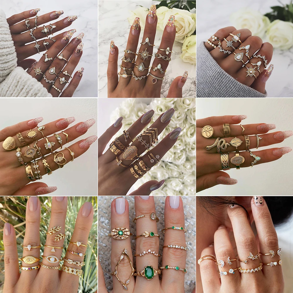 40 стилей, винтажные кольца с золотыми звездами и луной, набор для женщин, бохо, опал, кристалл, Midi Finger, массивные кольца, 2020, богемные ювелирные изделия, сделай сам, подарок
