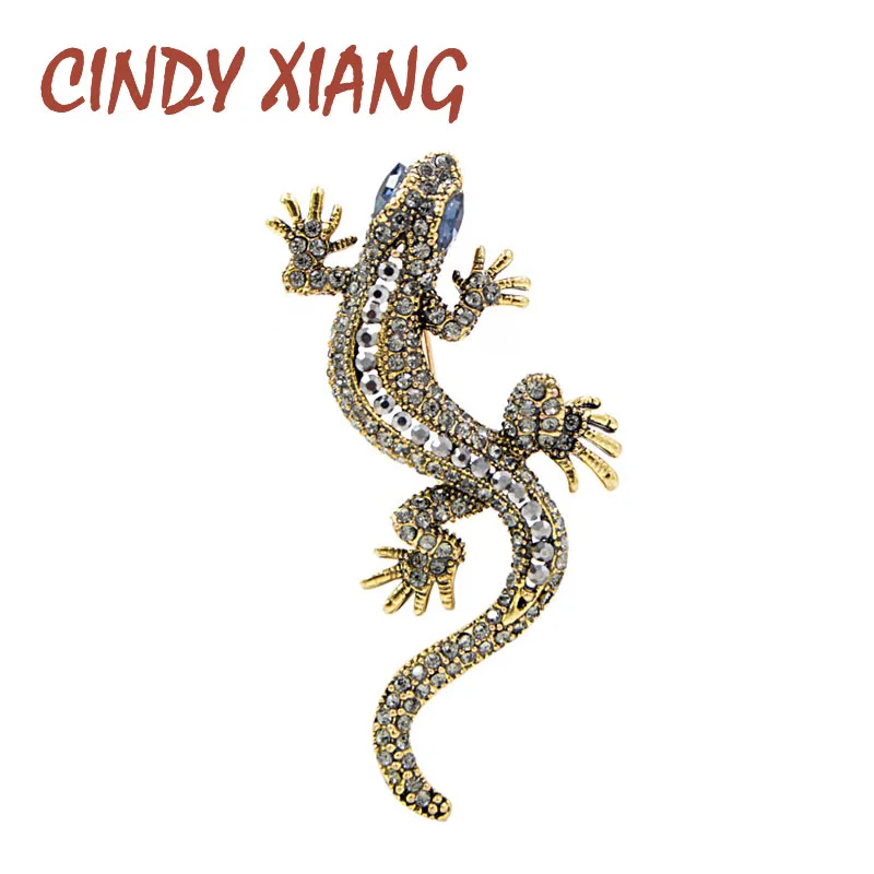 Синди XIANG 2 цвета доступны горный хрусталь броши в виде ящериц Винтаж Брошь булавка в виде животного полный горный хрусталь инкрустация кост...