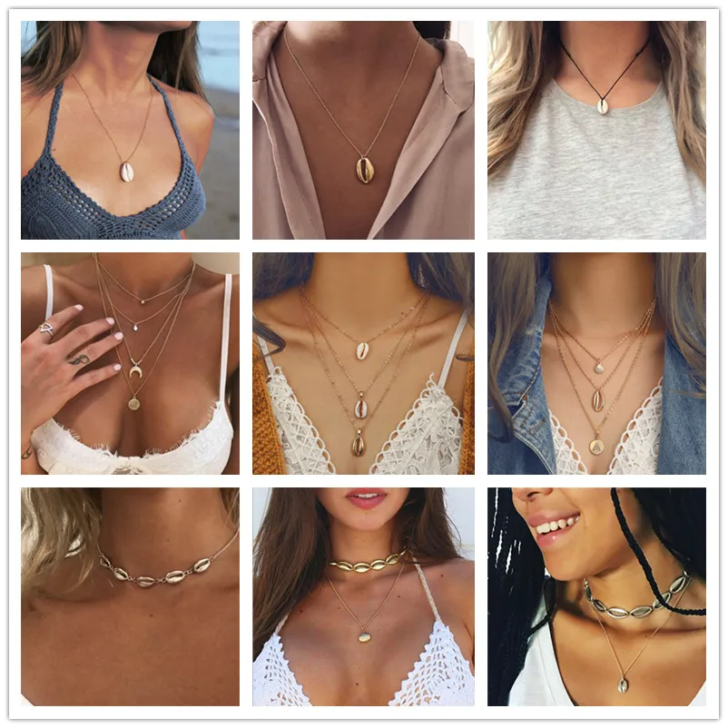 Модное богемное многослойное пляжное ожерелье с морским сиашеллом, женское модное Золотое пляжное ожерелье с цепочкой, ювелирные изделия