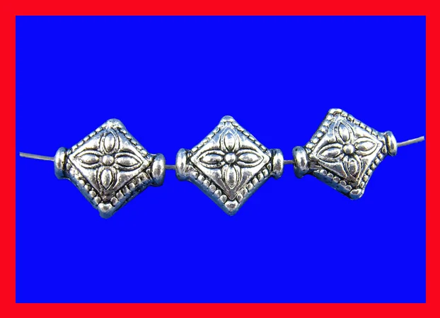 Цинковые металлические бусины-вставки из сплава ромб античное серебро FlowerColor покрытием около 10 мм x 8 мм, Отверстие: Около 1,1 мм, 10 шт