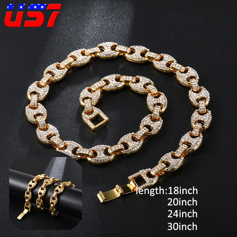 US7 Iced Out кофейные бобы звено цепи ожерелье для мужчин золотой кристалл хип хоп Rapper звено Bling цепь ювелирные изделия колье
