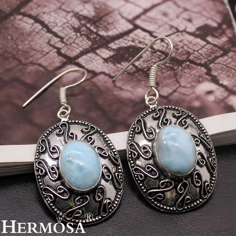 Natural Blue Ларимар Винтаж 925 Серебро мотаться Для женщин Jewelry Бесплатная доставка 2 1/8 дюйма TF293