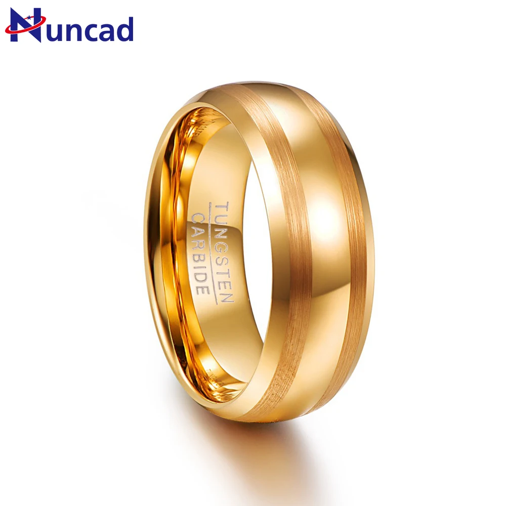 Nuncad Для мужчин 8 мм золото Цвет куполом скошенный край матовый линии Вольфрам обручальное кольца Размеры 7 до 12