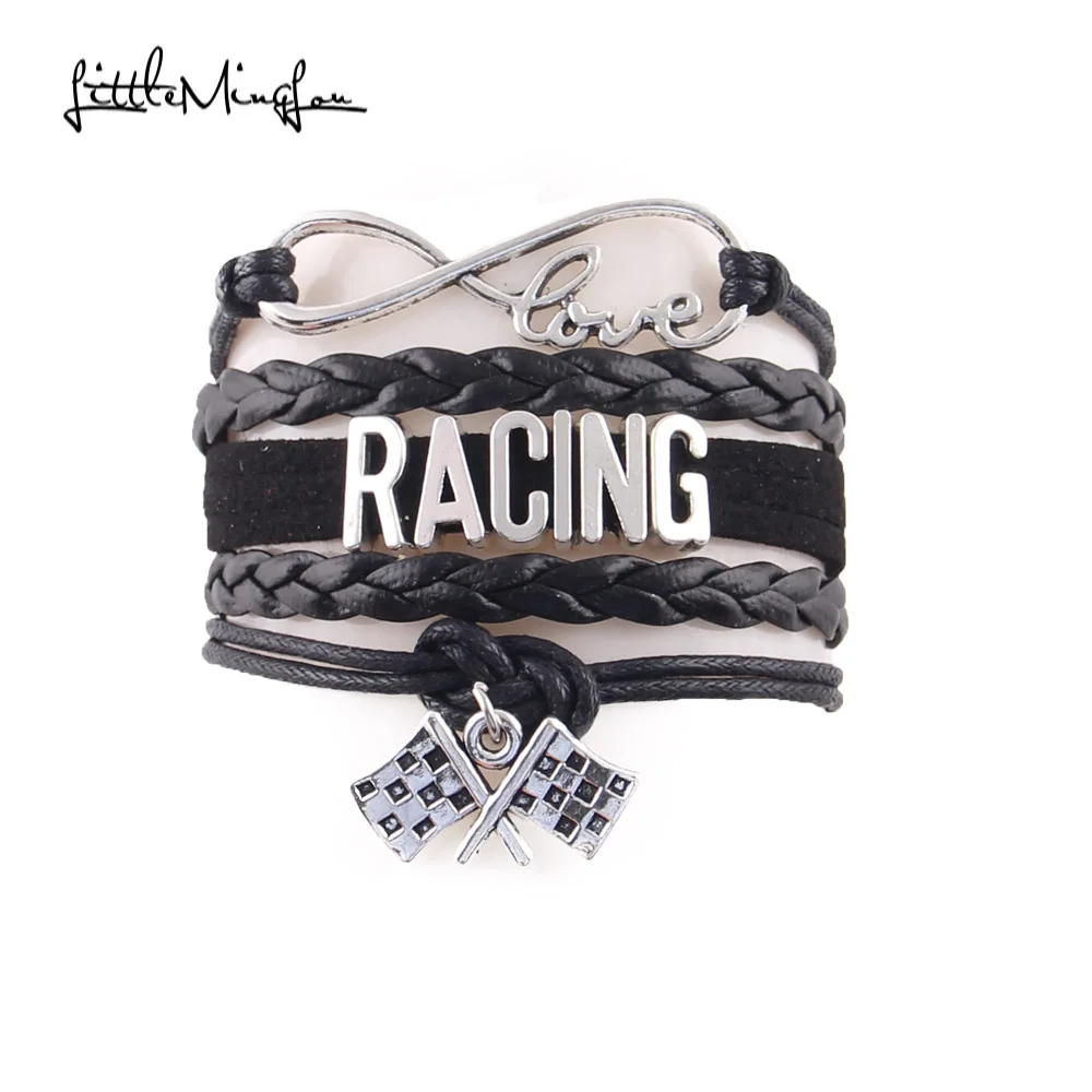 Маленькая Minglou бесконечность любви браслет со словом Racing флаг очаровательные женские браслеты и браслеты для мужчин ювелирные изделия race х...