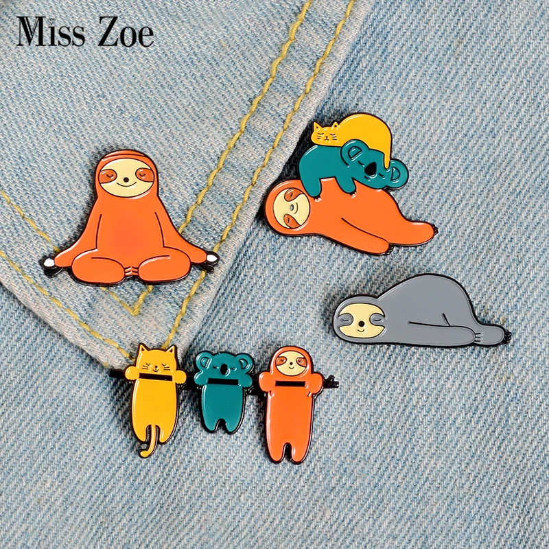 Милый Забавный лень эмаль контактный ленивый животное коала значок с изображением кота брошь лацкан джинсы рубашка сумка мультфильм украш...