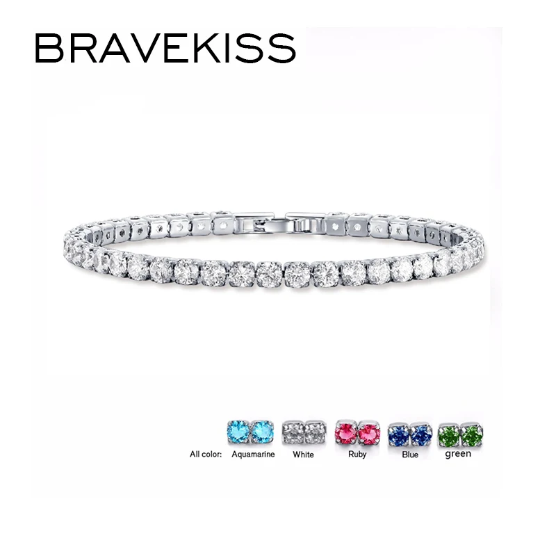 BRAVEKISS 5 цветов Fashioh Роскошные Хрустальный Теннисный браслет циркон бусины браслет цепи на запястье Strand браслеты для женщин BUB0097