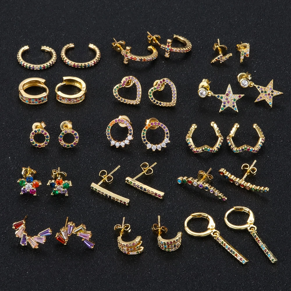 1 пара красочные серьги-гвоздики из кубического циркония Радужное золото сердце письмо серьги для женщин корейские серьги циркония ювелирн...