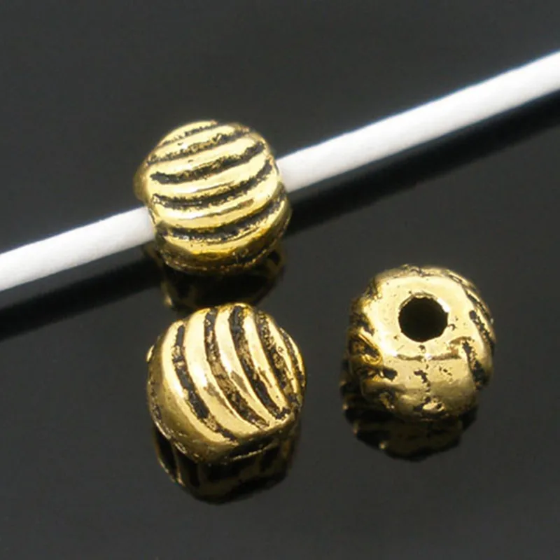 Цинковые металлические бусины-вставки из сплава шар золотой тон полоса шаблон цвет покрытием около 5 мм (2/8 ") Диаметр, отверстие: Приблизительно 1 мм, 30 шт