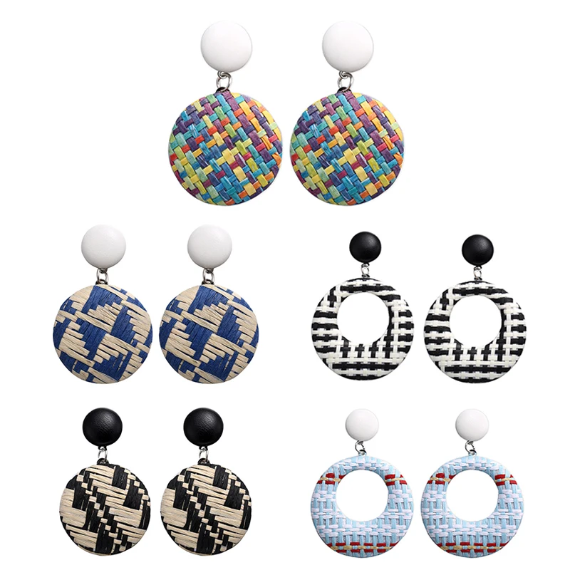 Новые 1 пара деревянных круглых плетеных соломенных висячих сережек из ротанга подарки горячая распродажа цветов богемные круглые серьги р...
