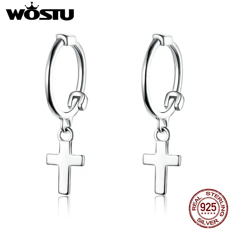 WOSTU 2019 Новая коллекция 925 пробы серебряный крест Висячие серьги для женщин Винтаж Висячие Серьги Свадебная вечеринка ювелирные изделия CQE547