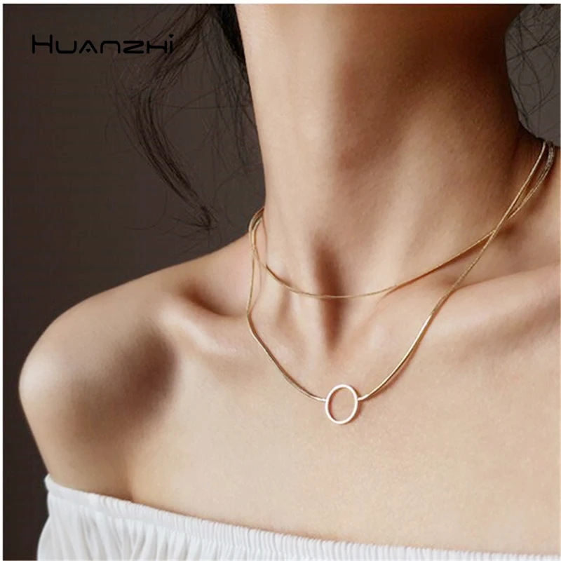HUANZHI 2019 корейские новые геометрические круглые двухслойный чокер широкие ожерелья-цепочки для женщин девушек вечерние подарки простые юве...