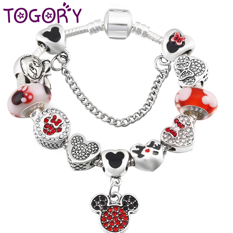 TOGORY, Аутентичные браслеты серебряного цвета с изображением Микки Мауса, изящный браслет с изображением Минни Маус для женщин, для мальчиков и девочек, ювелирное изделие, подарок