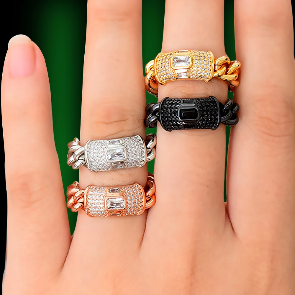 GODKI, смелое штабелируемое кольцо, роскошная массивная цепочка, кольца для женщин, свадебные с кубическим цирконом, Свадебные обручальные ко...