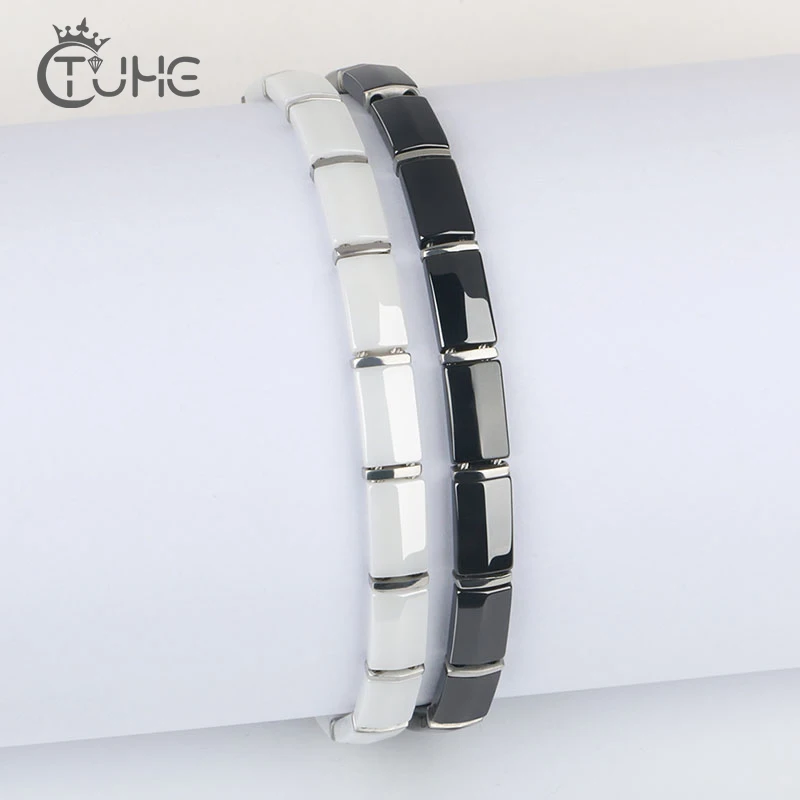 Элегантные женские браслеты, изготовленные из гладких керамических классических черных и белых браслетов, не выцветают, подарки на годовщину, модные украшения