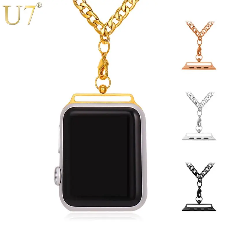 U7 Кулон Ожерелье Для Часы Apple Серии 1/2 38 мм/42 мм Пояса Аксессуары Для Мужчин/Женщин Цепь Из Нержавеющей Стали P1062