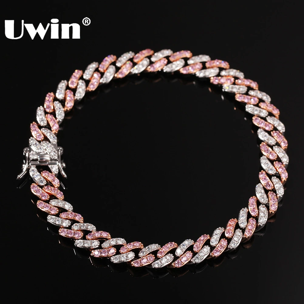UWIN мужской женский браслет 9 мм Iced Out серебро/розовое золото кубинское звено с белым и розовый кубический циркониевый браслет ювелирные изде...