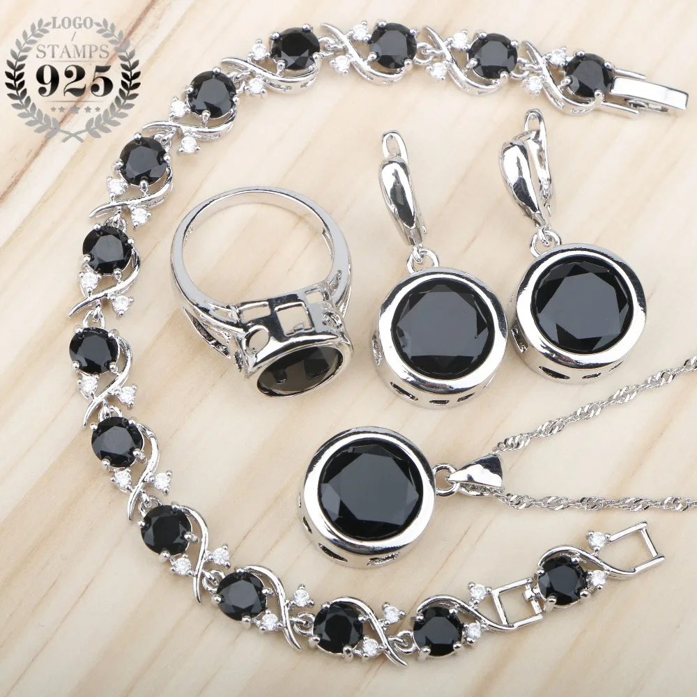 Черный Циркон 925 серебро наборы свадебных ювелирных изделий серьги с камнями/кольца/кулон/цепочки и ожерелья/Браслеты Набор для женщинбесп...