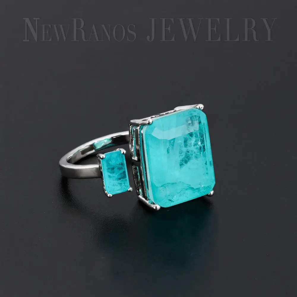 Кольцо Newranos с квадратным камнем Fusion, голубое кольцо с двойным камнем для женщин, модные ювелирные изделия RFX001904