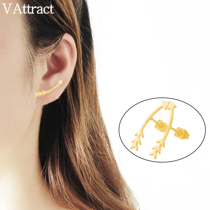 V привлечь 10 шт. стрелка альпинист Серьги Нержавеющая сталь Pendientes цвета: золотистый, серебристый Curve Boucles Винтаж уха повседневной ювелирные ...