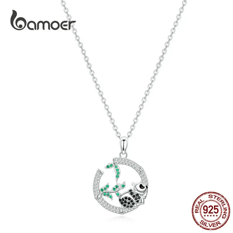 Bamoer дизайн панда и бамбук кулон ожерелье китайские Милые ожерелья в виде животных для женщин Стерлинговое Серебро 925 ювелирные изделия BSN079